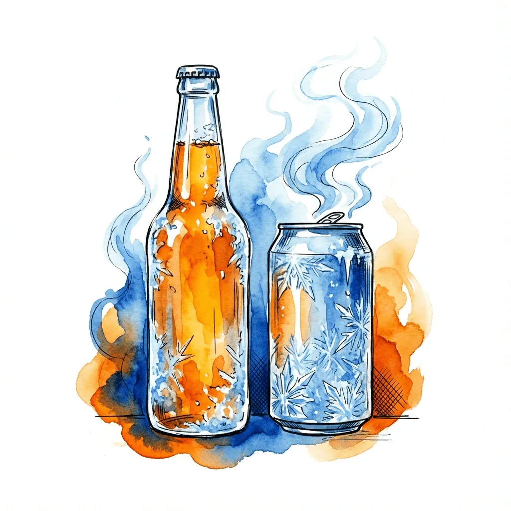 El aluminio tiene una conductividad térmica de ~205 W/(m·K), mientras que el vidrio apenas llega a 0.8 W/(m·K). El metal transfiere el frío violentamente rápido, lo que lo convierte en el envase ideal para emergencias.