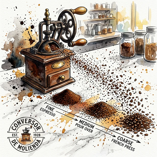 Ninguna tabla sustituye al paladar. El conversor te da el punto de partida técnico, pero el ajuste final siempre lo hace el sabor. Amargo y seco = sobre-extracción = muele más grueso. Agrio y acuoso = sub-extracción = muele más fino. Ajusta de uno en uno (un clic, un nivel) hasta encontrar el equilibrio perfecto para tu grano y agua específicos.Regla de oro para nuevos cafés
