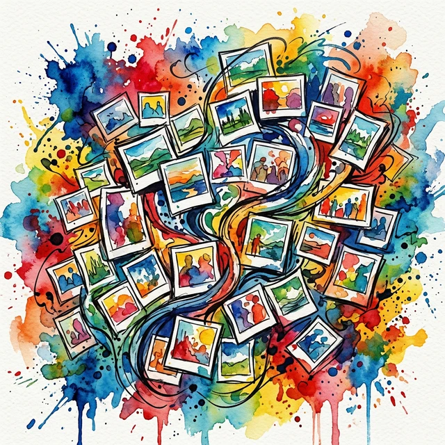 La composición es el arte de organizar elementos visuales de forma que guíen la vista del espectador y comuniquen intención. Un buen collage equilibra:- Balance: Distribución visual de peso (imágenes claras vs oscuras, grandes vs pequeñas).