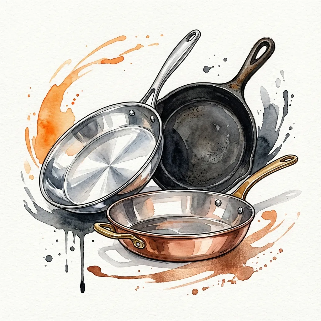 Multicapa / Tri-plyEl estándar en cocinas profesionales. No es un buen conductor por sí solo, por lo que las buenas sartenes "inox" son en realidad un sándwich: acero por fuera (resistencia), aluminio o cobre por dentro (velocidad).
