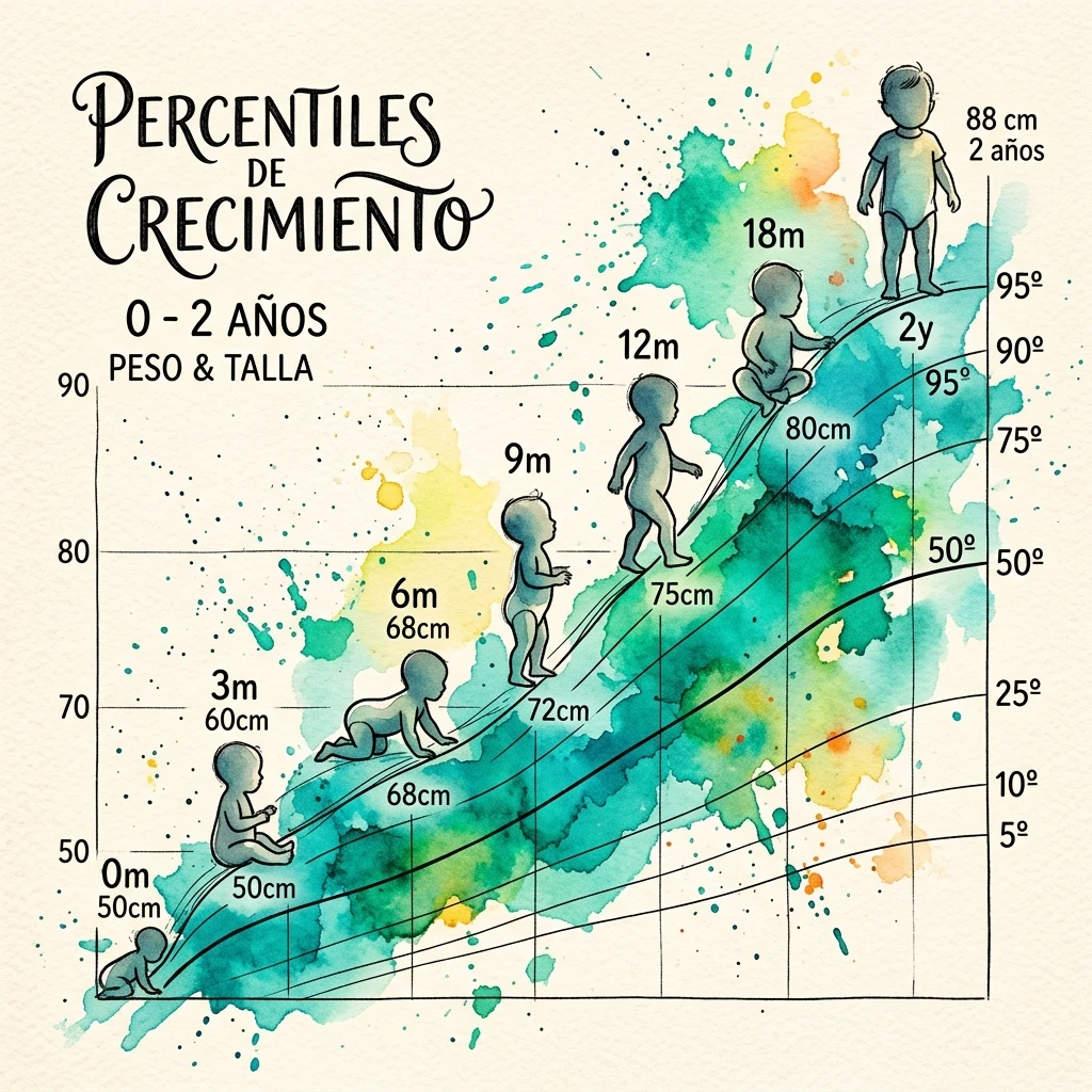 Es el temor más común en las consultas de pediatría. El percentil 3 marca el límite inferior de la "normalidad" estadística. Es perfectamente posible que un niño esté sano en el percentil 3 si sus padres son de complexión pequeña o si siempre se ha mantenido en ese rango. La alerta roja surge cuando un niño cae bruscamente de un percentil alto (ej. P80) a uno bajo (ej. P10) en poco tiempo, o cuando el peso y la talla están muy descompensados.